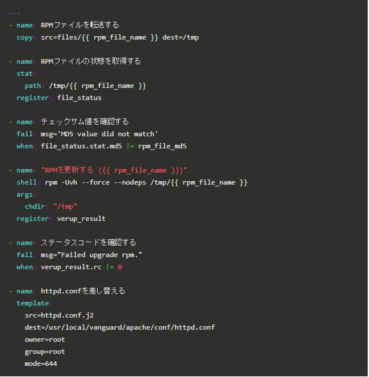 以下、playbookファイルの内容です。
