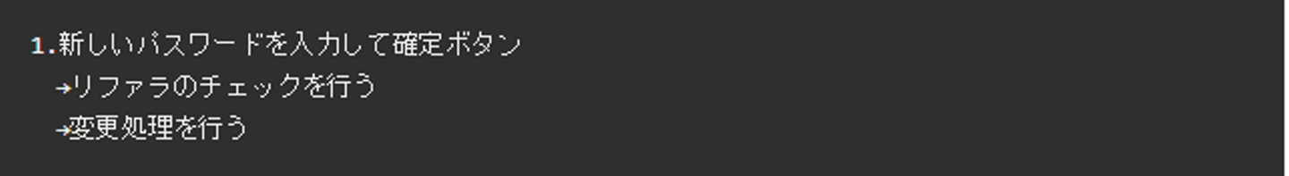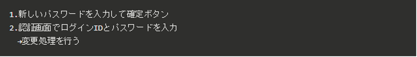 今回のパスワード変更の例ですと、以下のような流れになります。