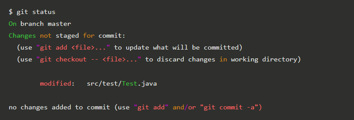 確実にインデックスに追加したい自身の編集ファイルのみ git add src/test/Test.java