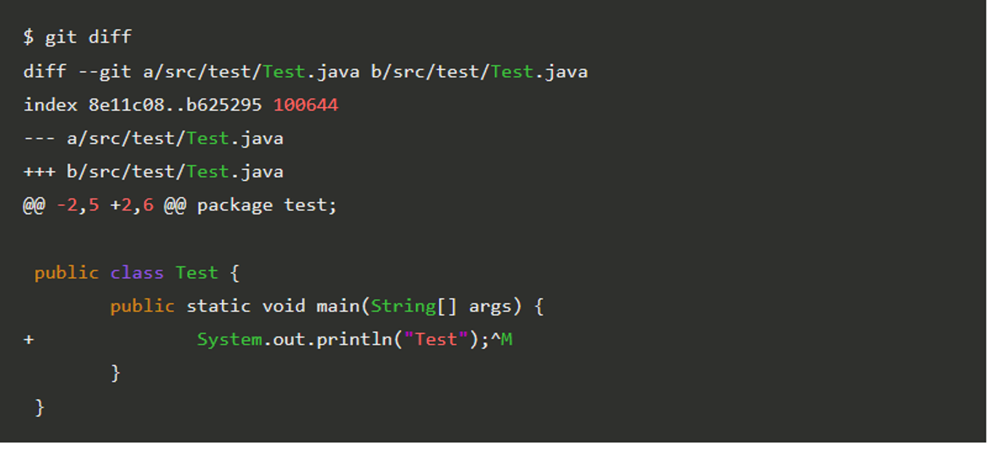 Test.javaに変更があったようです。ソース内ではどのような変更があったのgit diff