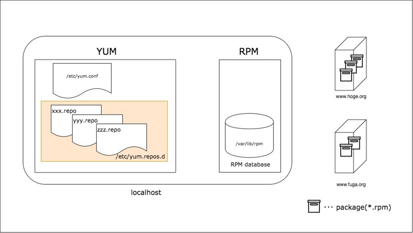 yumとrpmとリポジトリの配置場所との関係性は下記のようになっています。