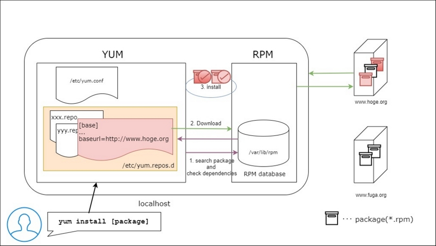 yumとrpmとの違いって?とりあえずyum使ってるけど...yum install [package]って打つだけでなんでDL&Installできるの?