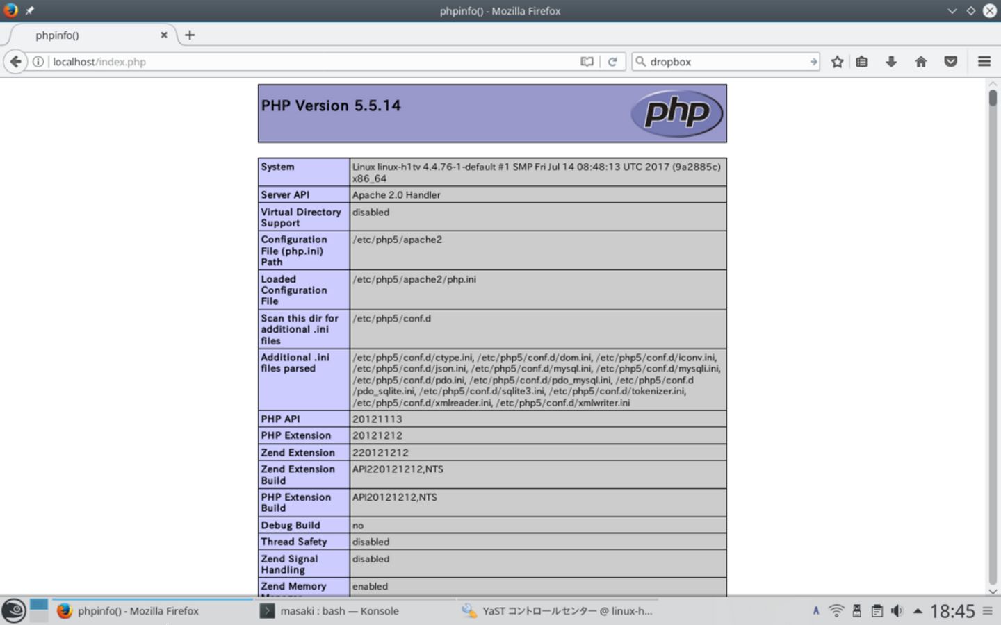 PHPを利用するためにはapacheを設定する必要がありますが、こちらもYaSTで設定することができます。