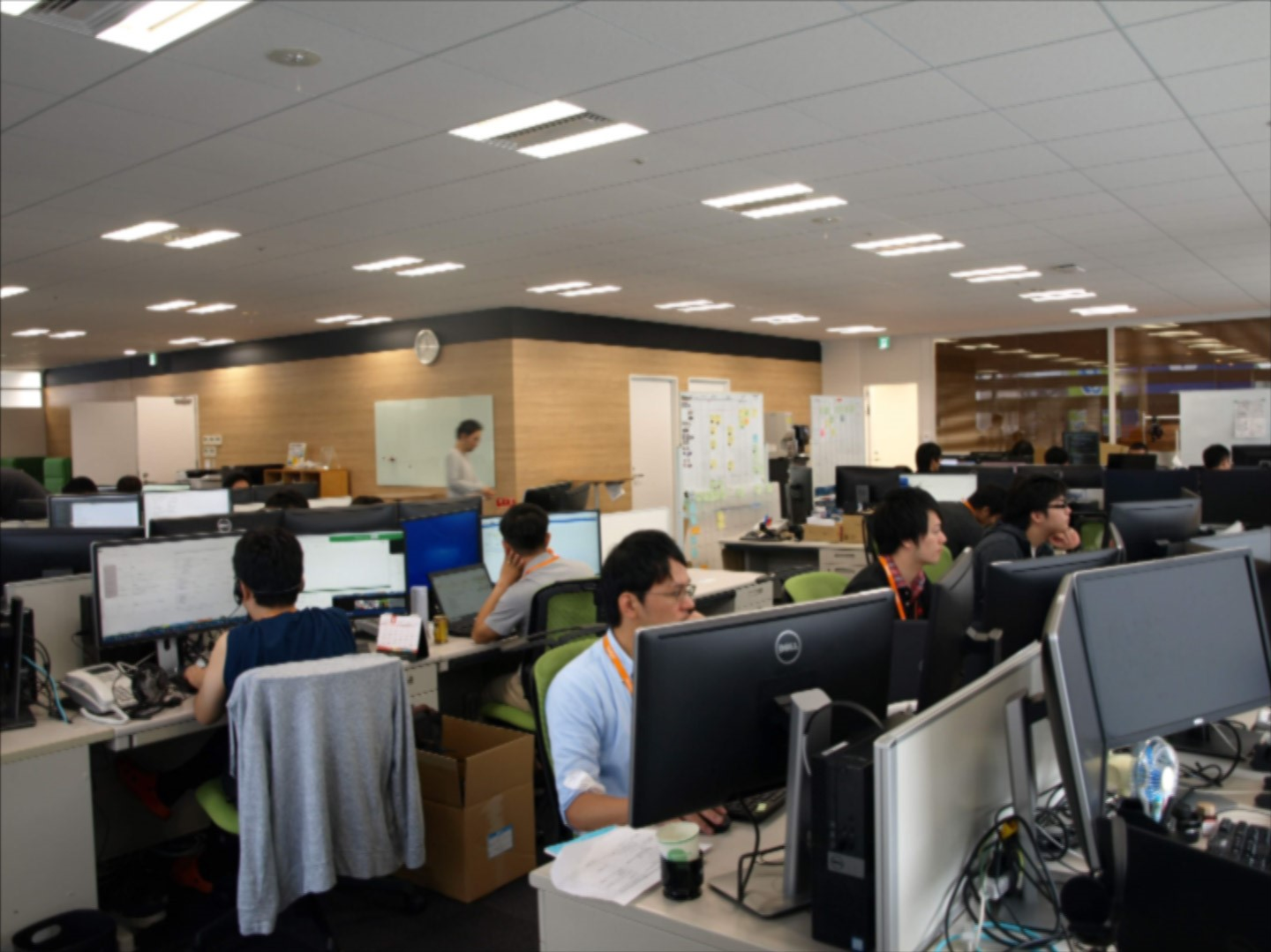 営業・サポート部門と開発部門でデスクの色が違うことにお気づきでしょうか^^