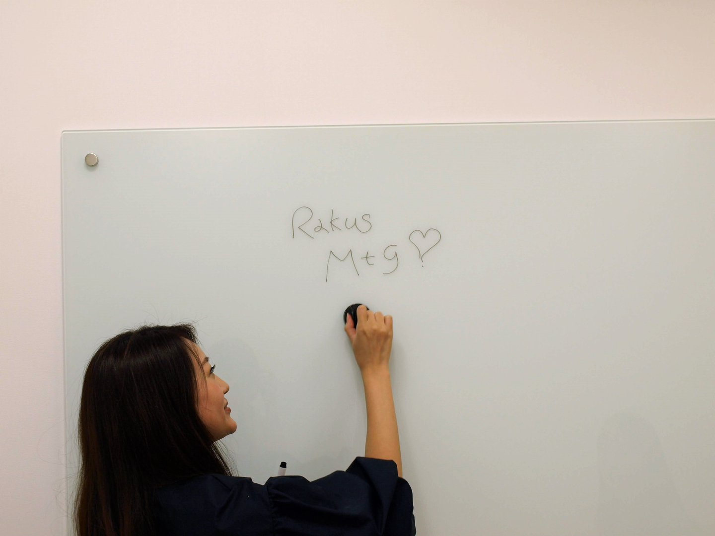 知場さん、中のホワイトボードにちょっぴりいたずら中。かわいい。