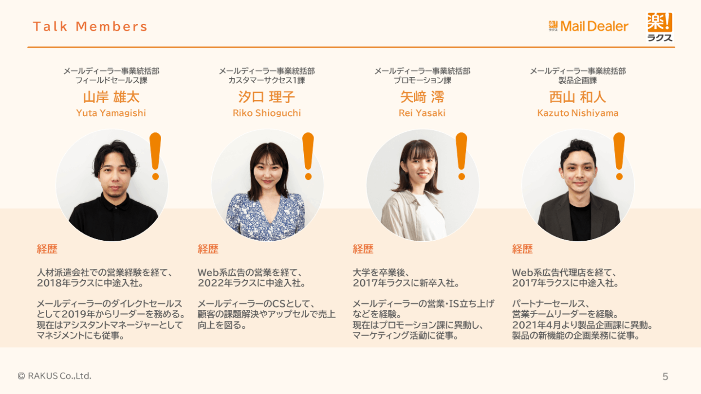 本日は、メールディーラー事業統括部から、こちらの4名にご登壇いただきます。
