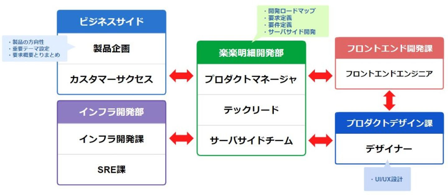 フロントエンド開発課のエンジニアは、各プロダクト開発チーム内のサーバサイドエンジニアや