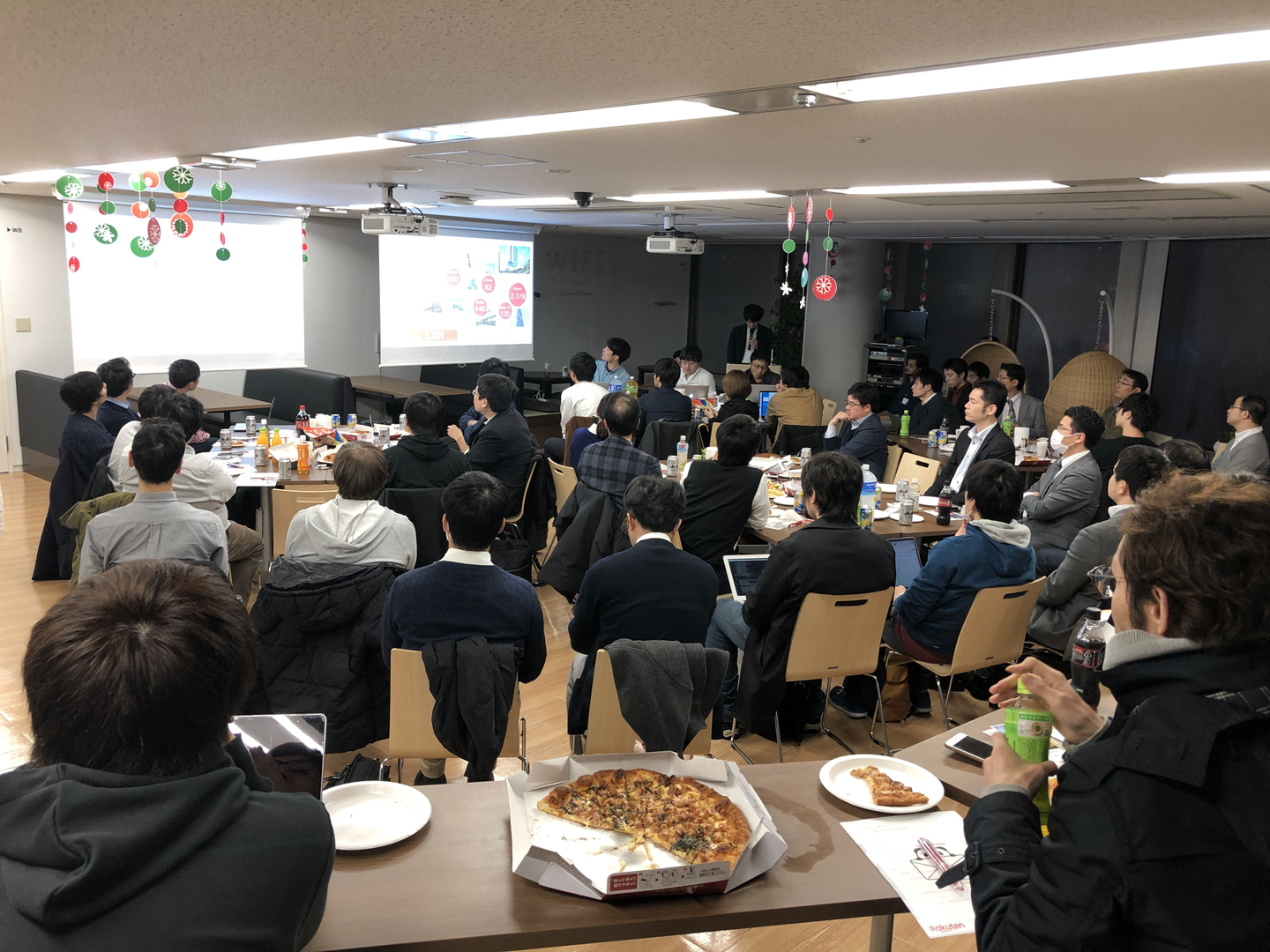 通常事業ごとに行うことが多いMeetUpイベントですが、今回はなんと4つの事業のエンジニアが多数参加し、楽天福岡オフィスでの開発について語りました。