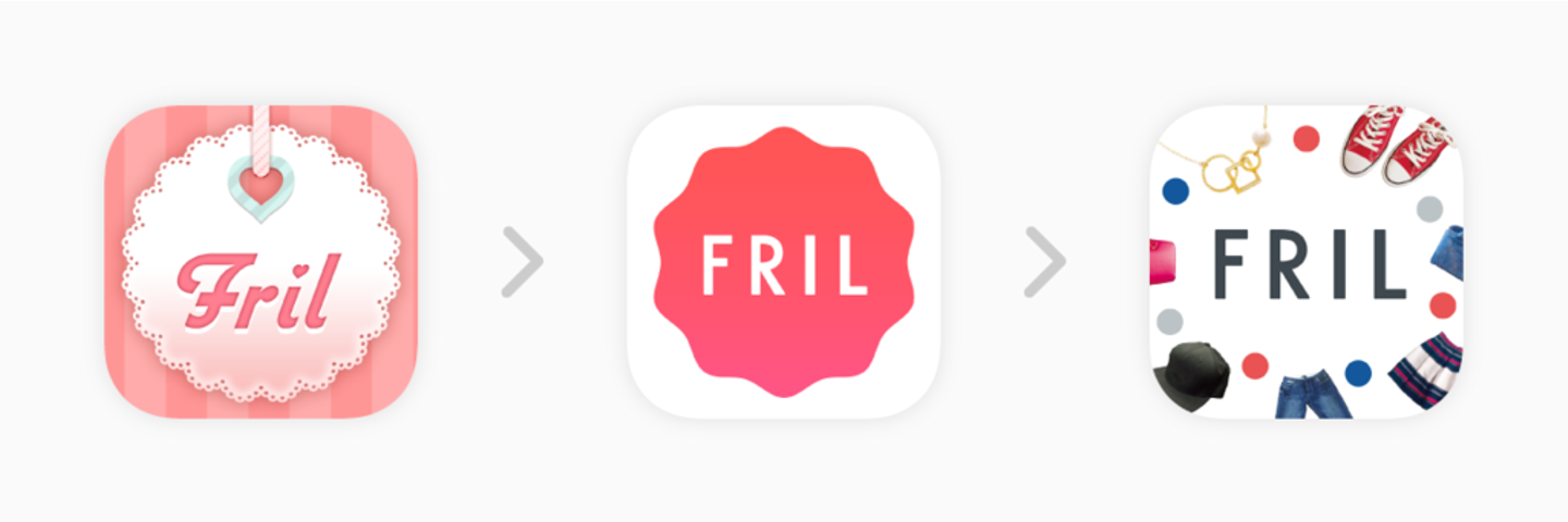 まず、フリルはサービス開始から4年の間に、大きなロゴ・アプリアイコンのアップデートを3度行っています。