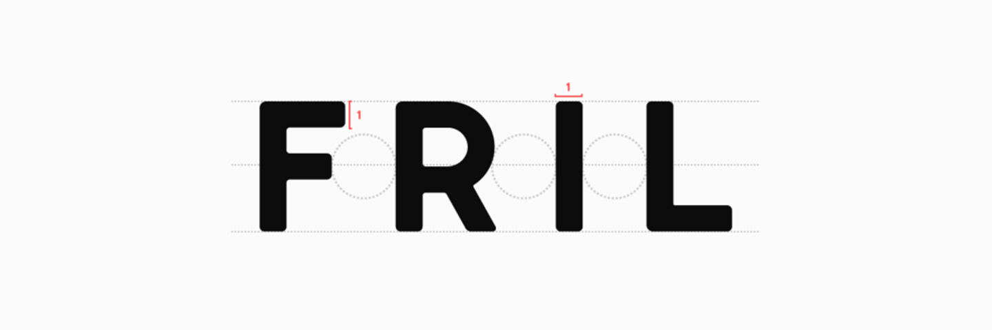 また、Rの足が長く、直線が多い、FRILという綴りの中では、R と L に挟まれた I の左右の余白が掴みづらく、あまり美しい形ではありませんでした。