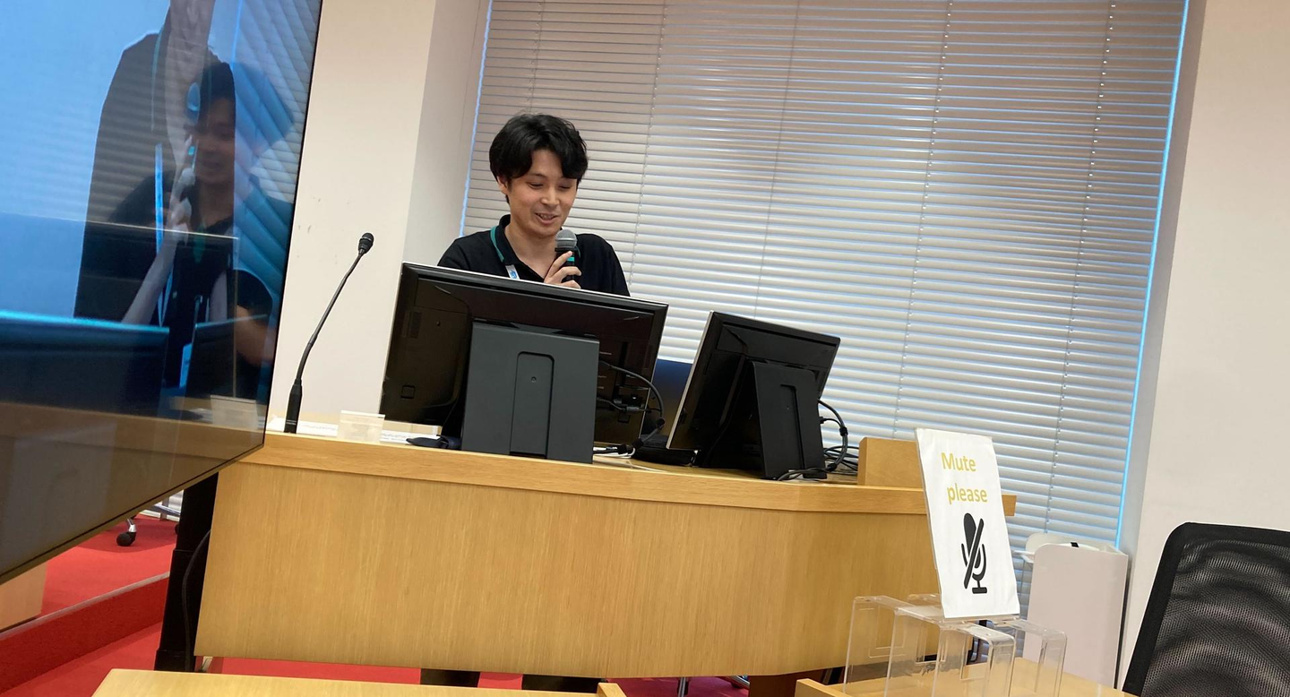 登壇者は前にある専用のスペースにきていただき、発表していただきました。