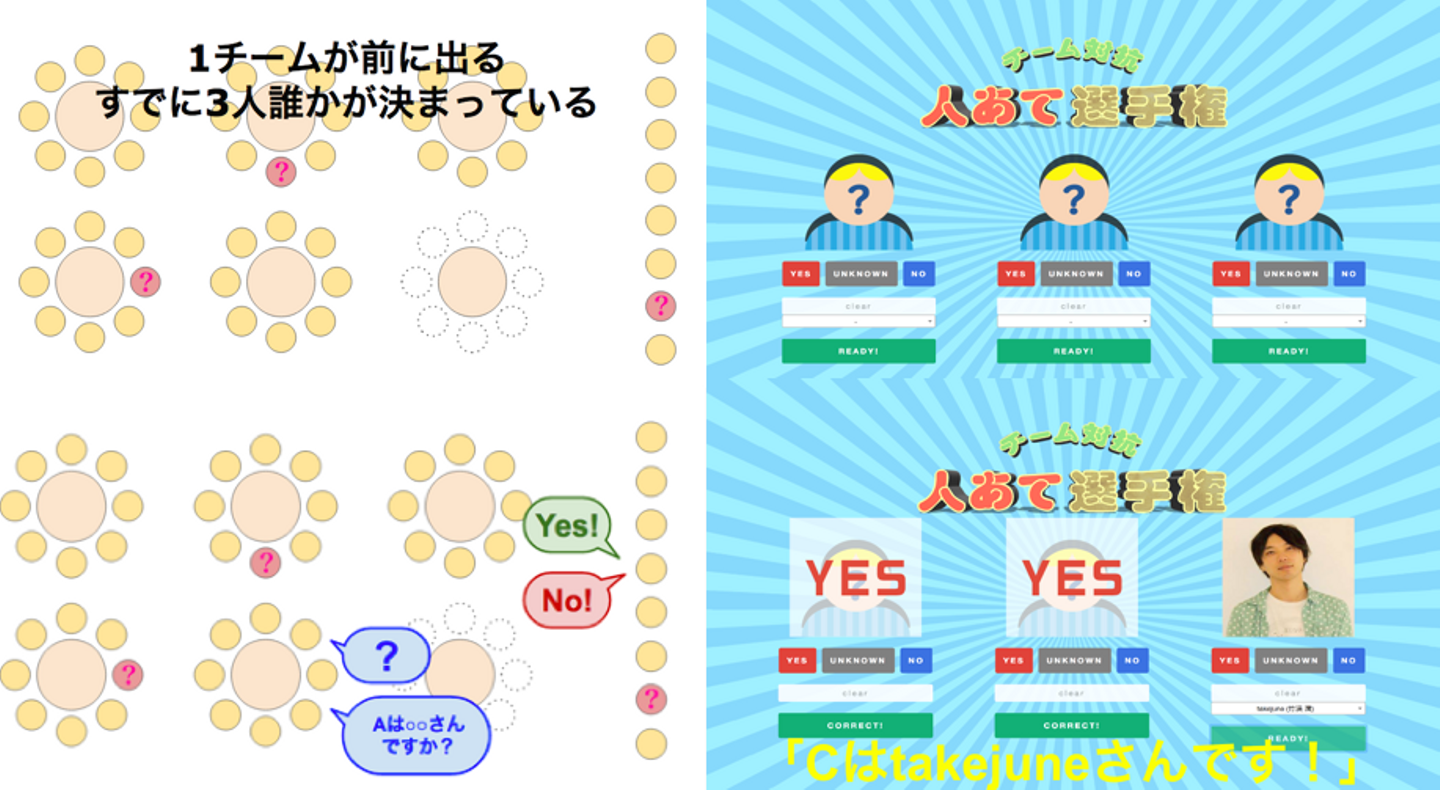 上は実際にクイズで使用された画面の一部です。はじめはデモ画面で説明をききながら手探りでのスタートになりましたが、回を重ねるにつれてみなコツをつかんだのか、正解がでるまでの時間がだんだん短くなっていました。
