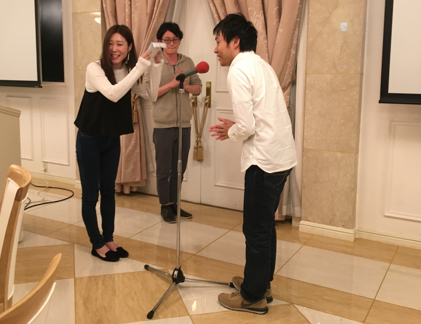 今回司会をつとめたエンジニアの岸(上写真中央)は、限られた時間の中で手際よくかつコミカルにMCをこなし、その司会ぶりは会の終了後に各所で絶賛されていました。