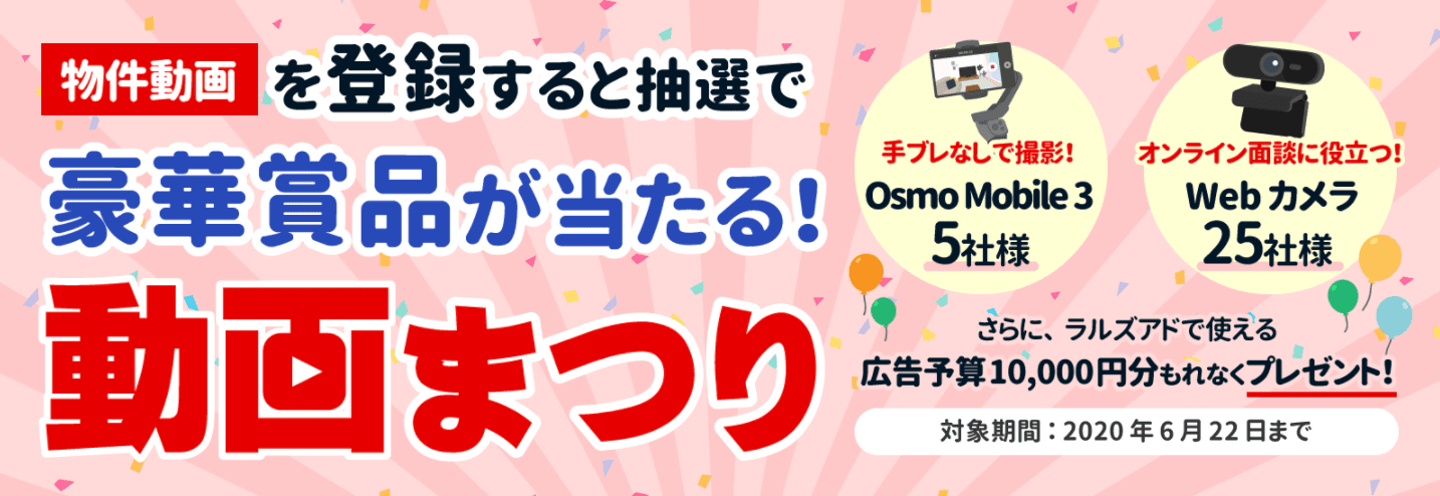 物件動画をアップするだけでスマホ用ジンバルなどの景品が抽選で当たったり、「WEB面談」をやったことがない企業様にZoomなどのツールを一対一でレクチャーしたりといったイベントです。