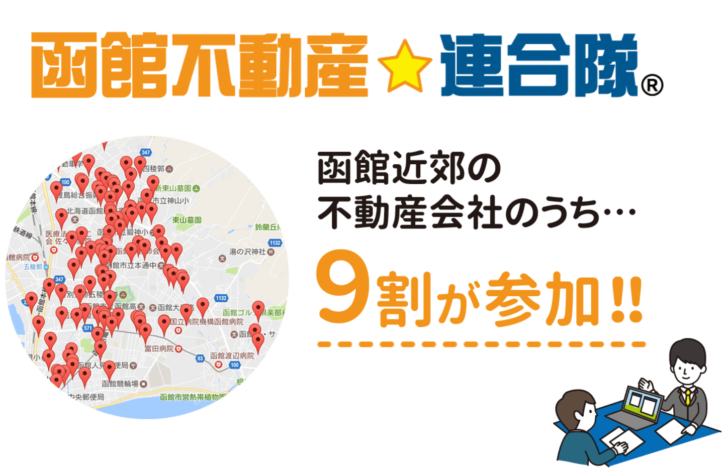 ▼たとえば函館エリアでは、なんと9割以上もの不動産会社様が参加してくださっています。ここまで来ると、市場シェア1位なので、ランチェスター戦略でいう「強者」に該当します。