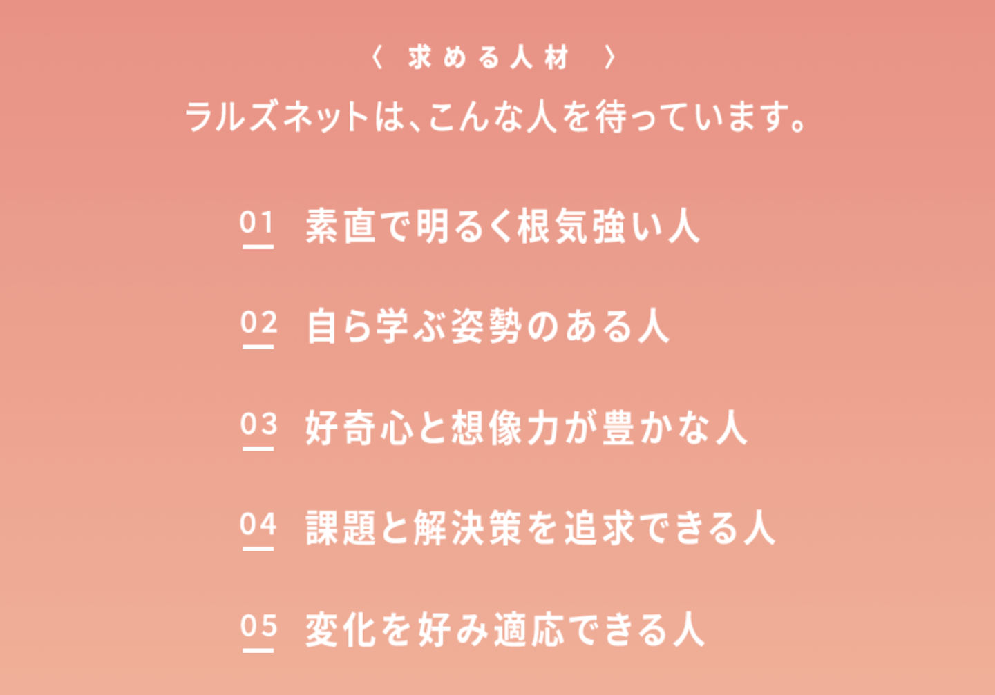 ラルズネットでは「求める人材」の要件として以下を掲げていますが、今回は、その中でもとくに重要な「想像力」についてお話します。