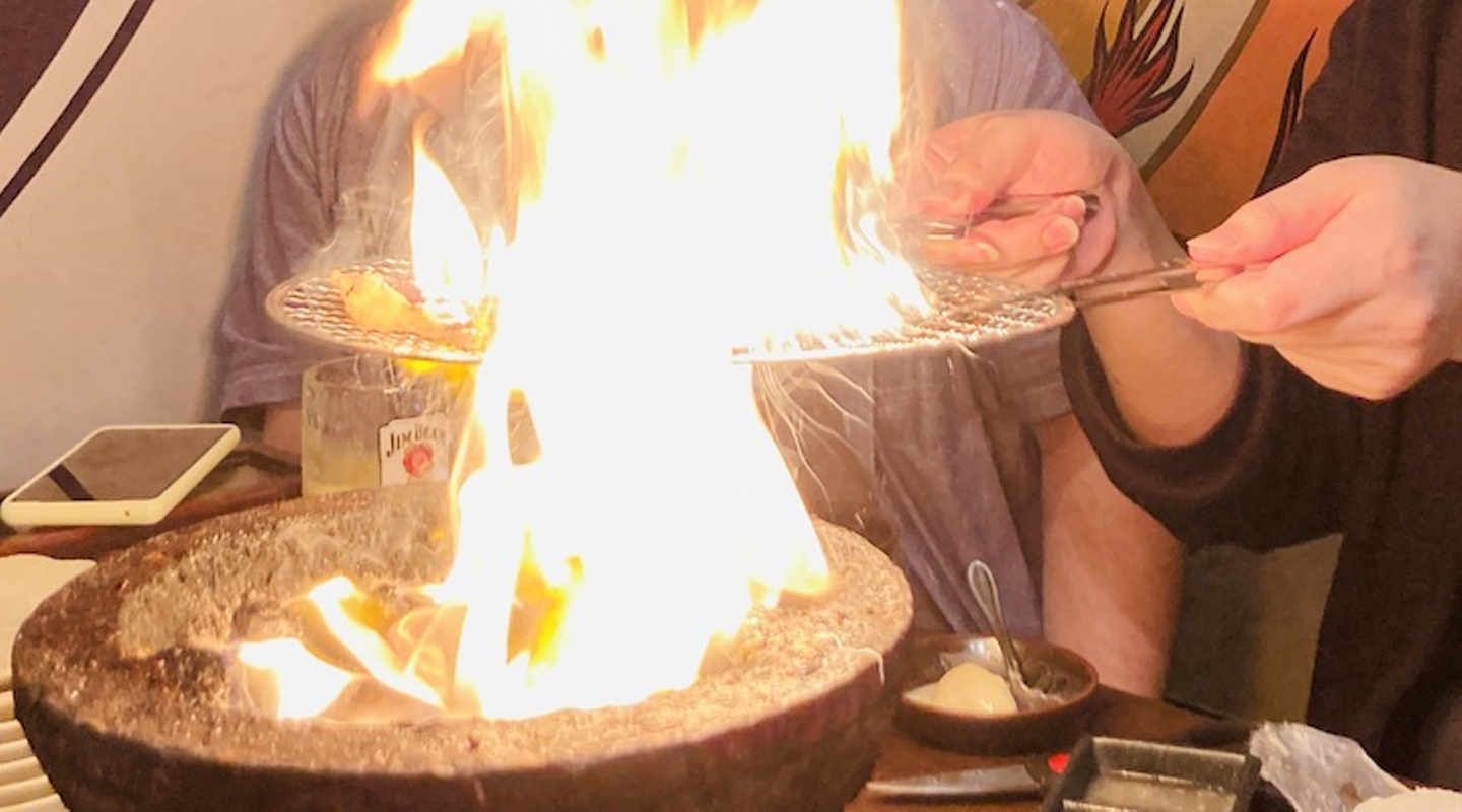 ▼炭が炎上するのは、焼肉あるあるですね(笑)網の上のお肉は無事でした!