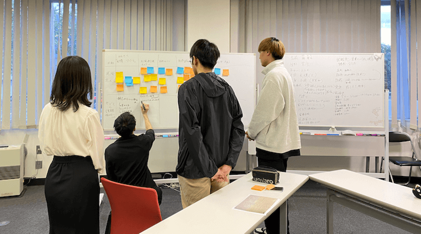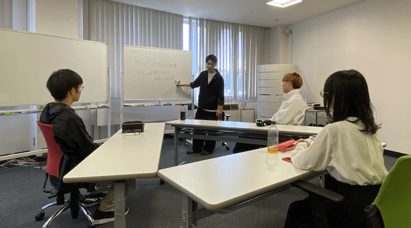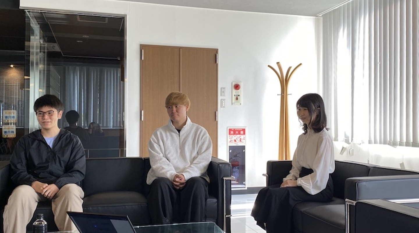 エンジニア職内定者の加藤さん、堀さんと、デザイナー職内定者の石田さんに札幌オフィスへ来ていただき、行っています。