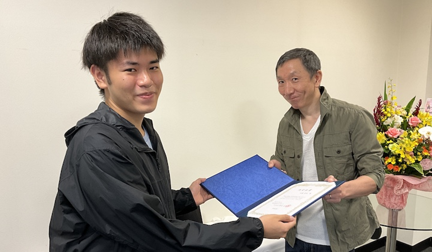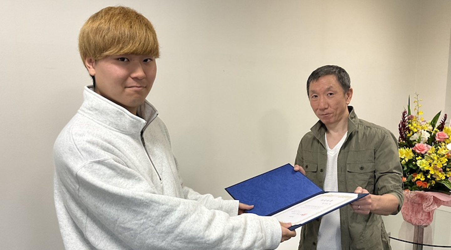 Zoomからご参加くださいました鈴木社長より激励の挨拶をいただき、大中専務より内定証書の授与を行いました。