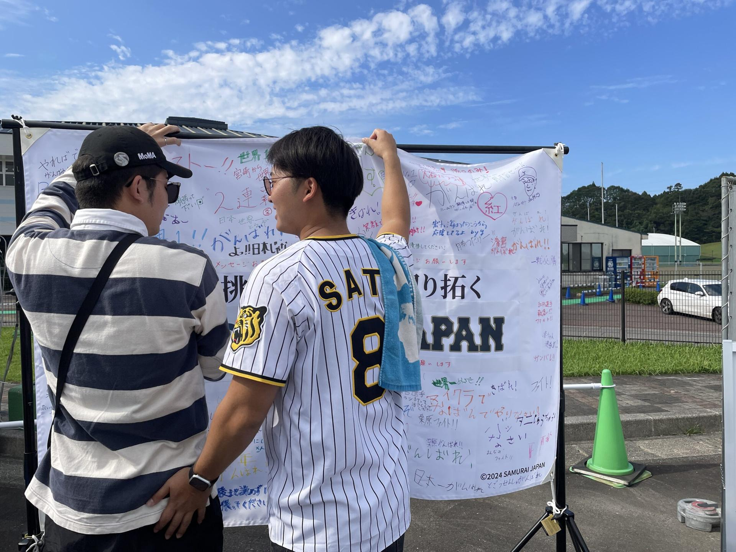 このメッセージフラッグは、「ラグザス 侍ジャパンシリーズ2024 日本vsチェコ」の試合開始前に、侍ジャパンの選手に直接お渡しさせていただき、ファンの皆様からのエールが詰まったフラッグが選手たちの力強い後押しとなったことと思います。