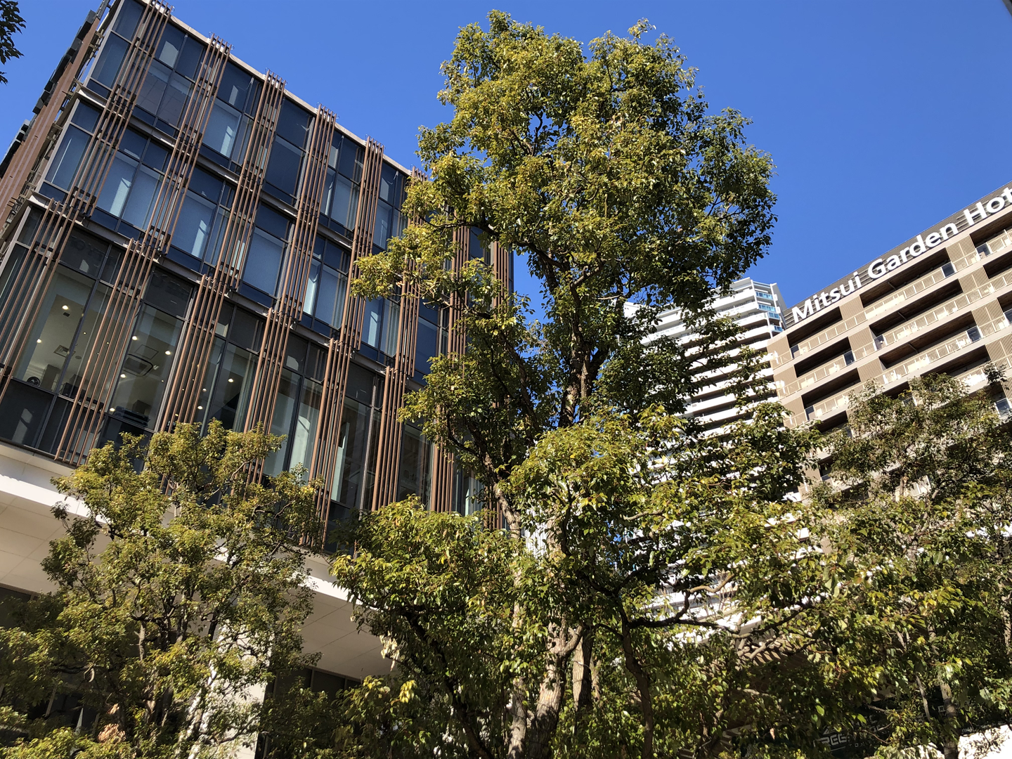 写真は弊社オフィスが入っているオフィス棟「KOIL」(写真左)と、温泉大浴場を持つ「三井ガーデンホテル柏の葉」(写真右)です。