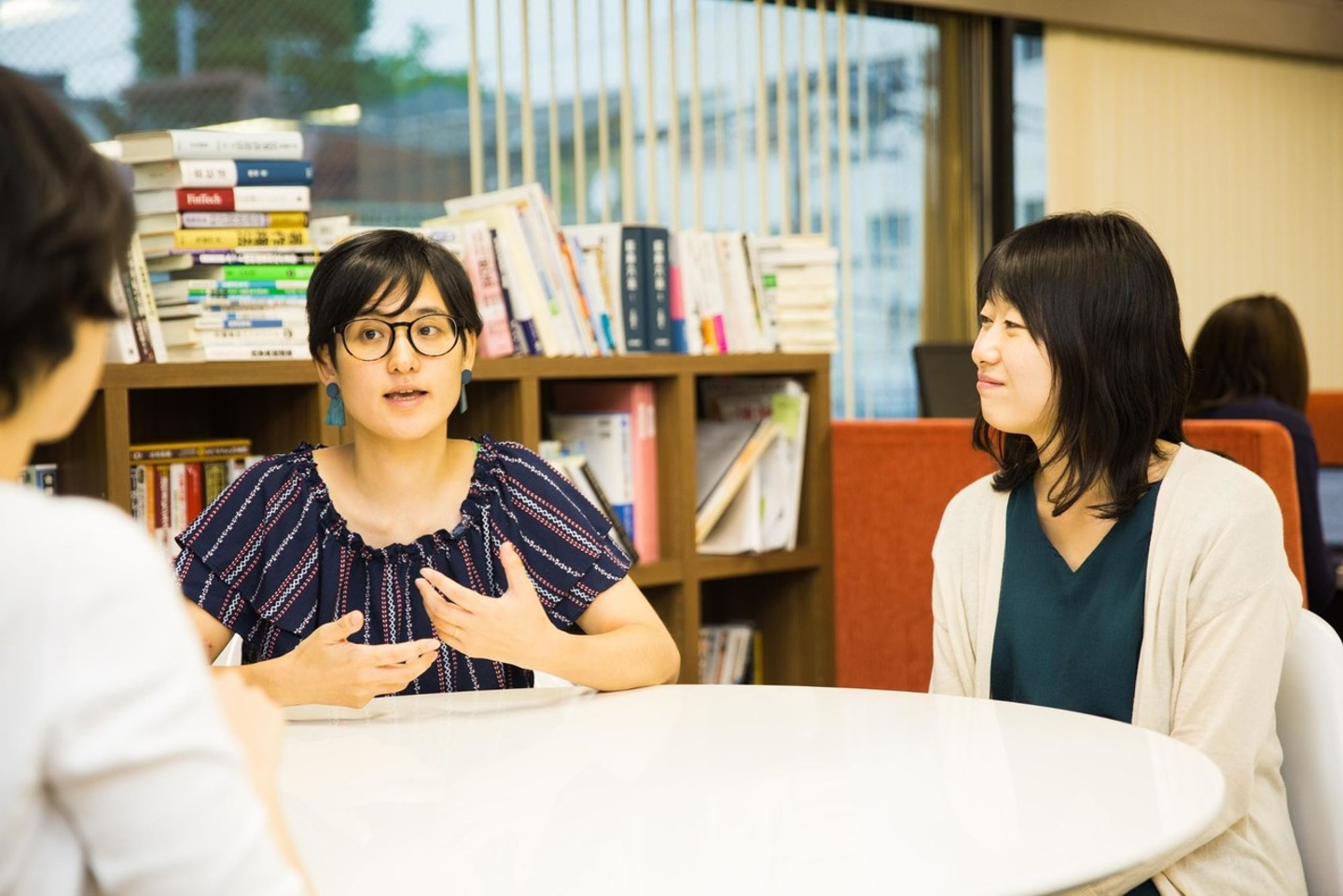 前職で編集経験のあるキュレーター。左から松嶋、齋藤。二人に加えてREADYFOR在籍歴が長いキュレーター、廣安も参加。