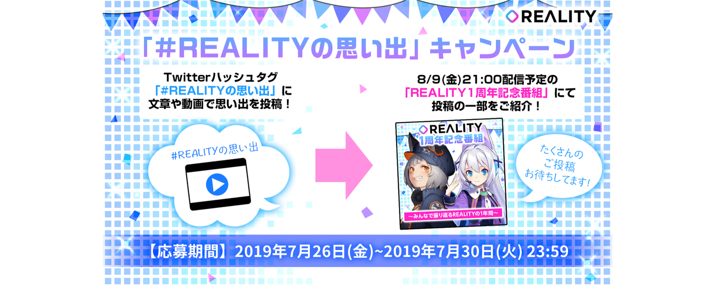 それを記念して、8/9(金)に「REALITY1周年記念番組 ~みんなで振り返るREALITYの1年間~」を生配信します!