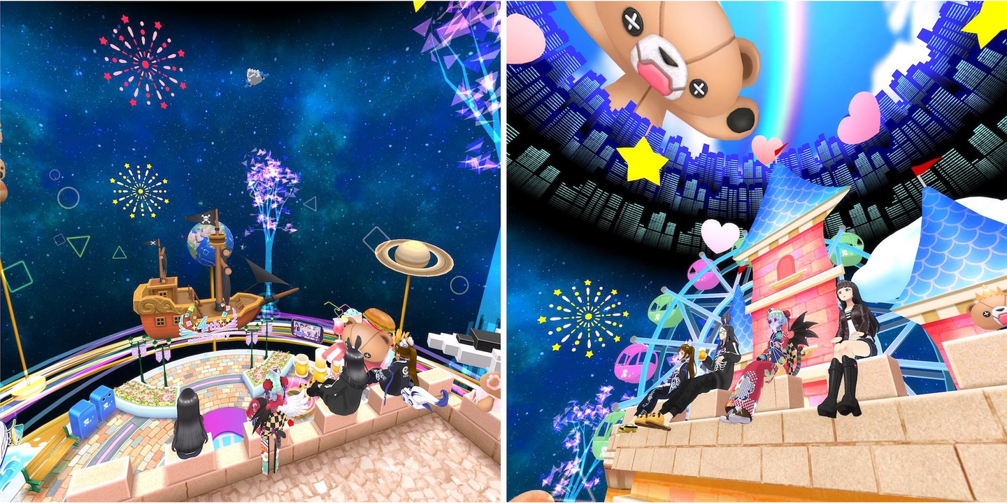 「遊園地」というコンセプトで、メタバース空間で友達と一緒に遊んだり生配信番組を見るなど、コミュニケーションをしながらワイワイ楽しむことができます。