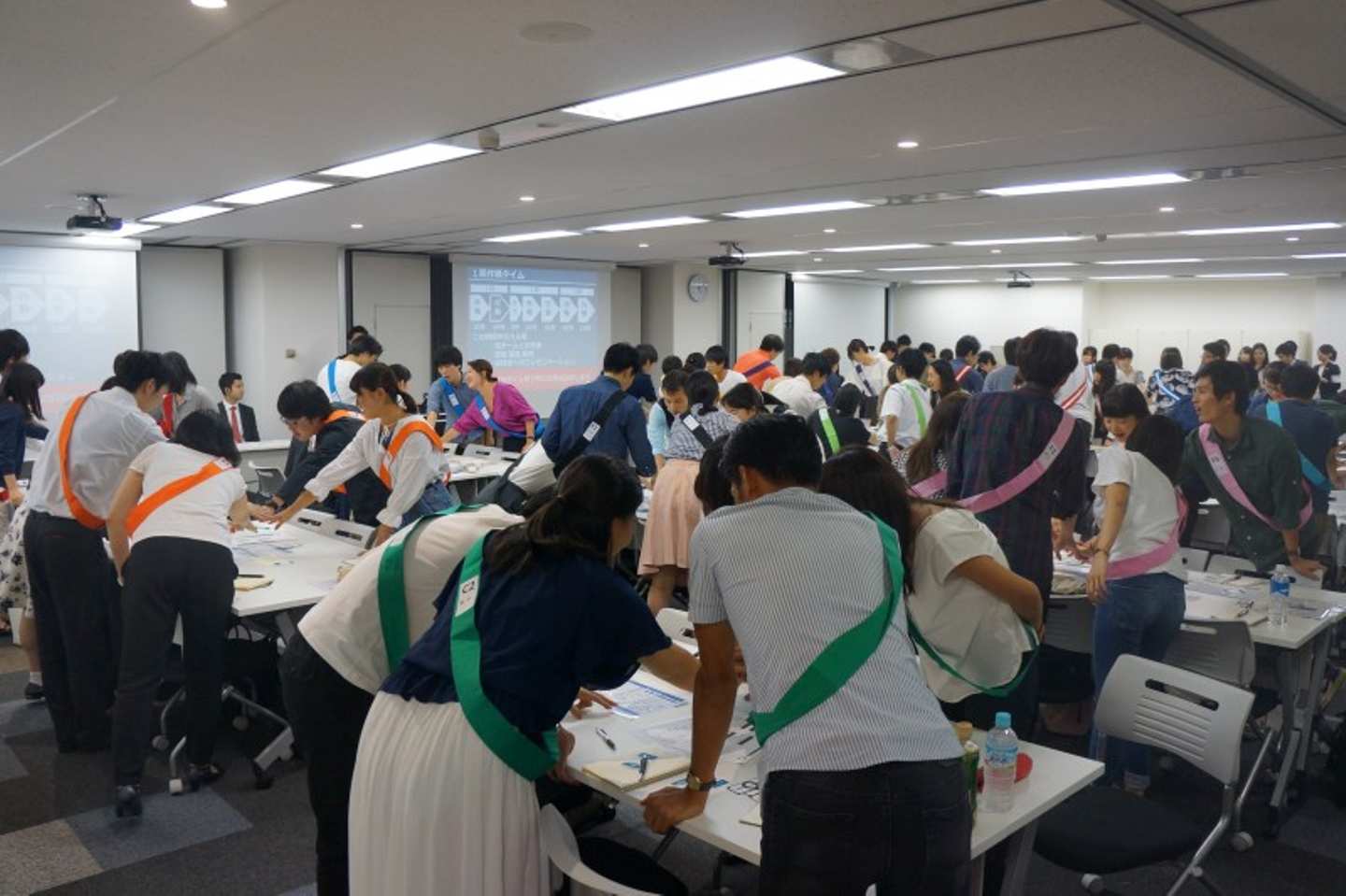 ビジネスゲームを学生様に行って頂き、プロの人事の方々が評価。