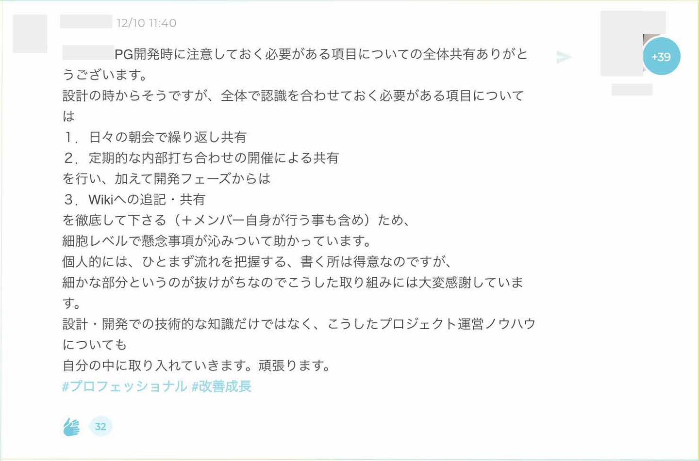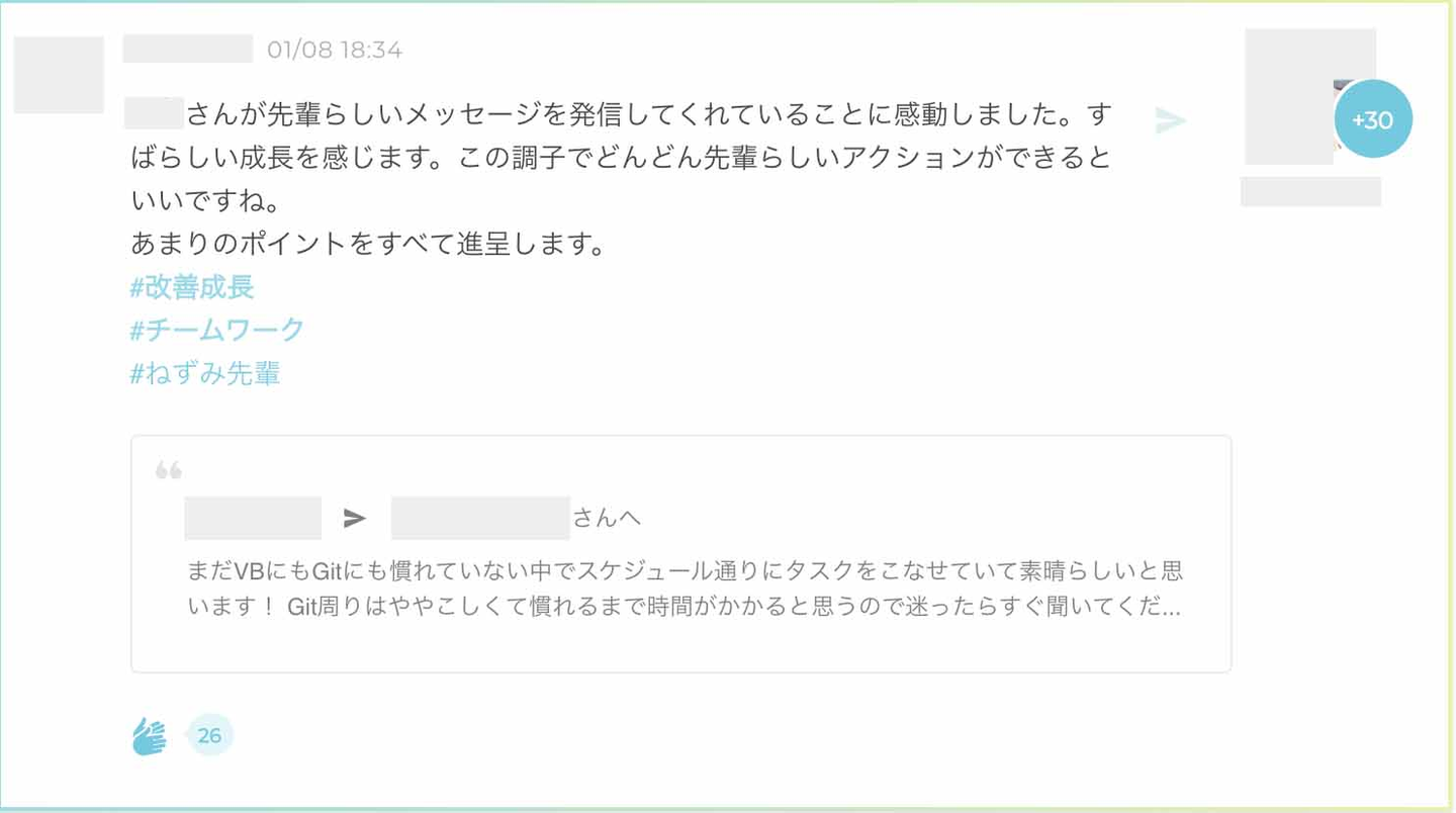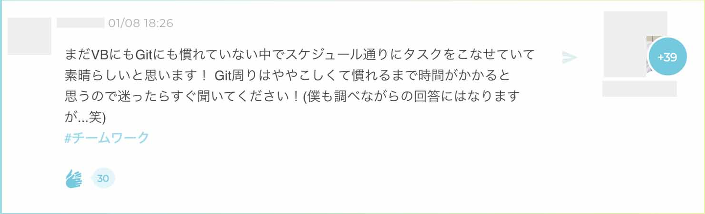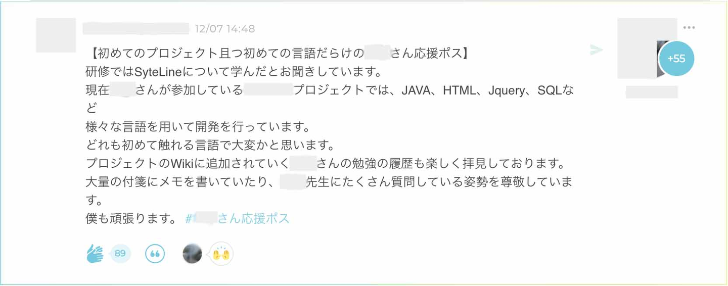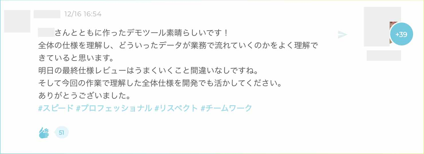 普段プロジェクトで関わることのないメンバーの頑張ってる様子が分かったり、流れてくる感謝の投稿を見てほっこりしたり。