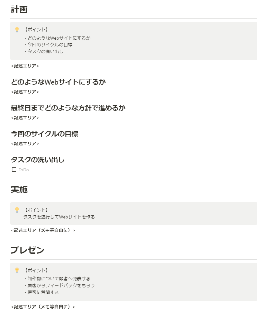 要求仕様を受けて、アジャイルプレゼンワークと同様に計画→実施→検査と適応を計3回行って完成を目指します。