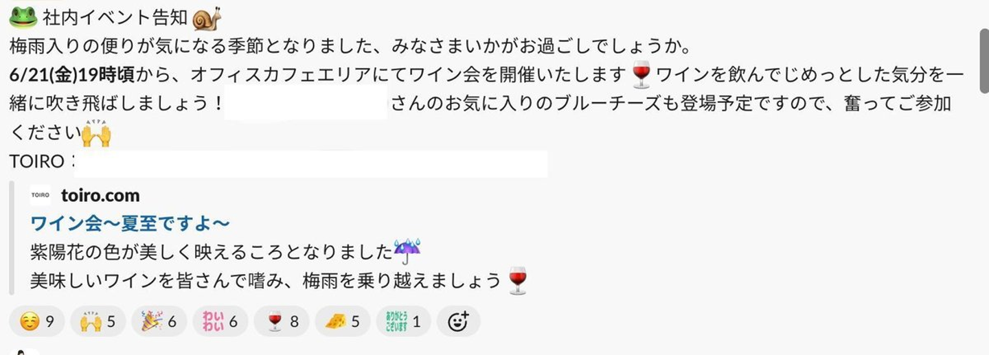 開催はSlackで全社員に告知され、日常を彩るコミュニティイベントアプリであるTOIROから思い出の写真を確認できます📸
