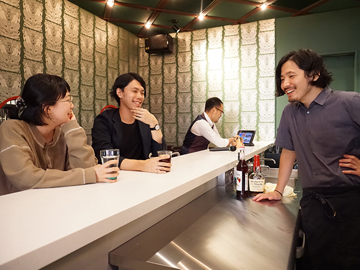 綾村:リビタのこれまでの事業領域としては、SHAKOBAは新しい領域の施設です。しかし、SHAKOBAの空間は社会的に新しいものかというと、実はそうではなく、昔からある既存のプログラムの組み合わせと言い換えなのです。例えば、リビタのBUKATSUDOでこれまでやってきているレンタルスペースにカラオケを加えれば、その空間がカラオケボックスになりえます。また、昔からあるスナックは、外から見ると少し入りづらさを感じる時もありますが、SHAKOBAではエントランスとスナックのカウンターを連続させることによって一見さんが入りやすい雰囲気にするために、スナックだけどオープンな設えにするなど、工夫しています。今までの歴史の中にあるスナックやキャバレーの要素をピックアップし、現代風に解釈してできたものがSHAKOBAということです。