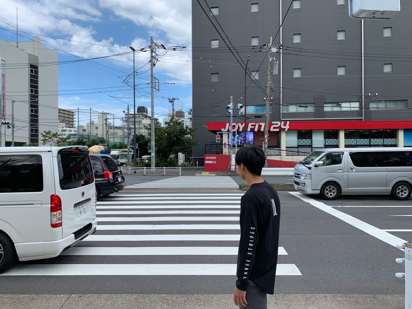 ④おもむろに、JOY FITさんへ向かって横断歩道を渡りましょう