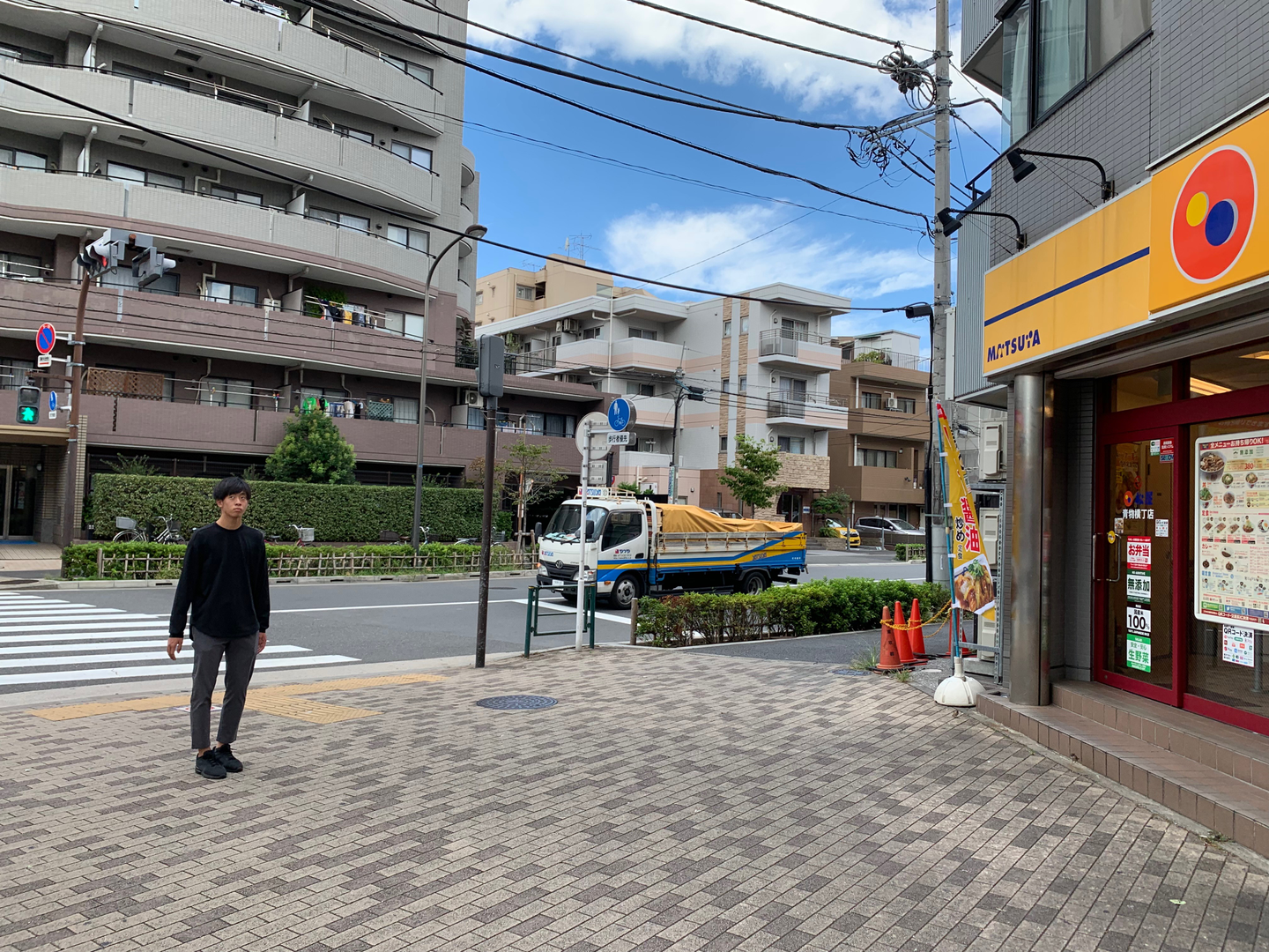 ⑥松屋が見えてきたらあと少し!三浦くんの背中側の横断歩道渡りましょう!