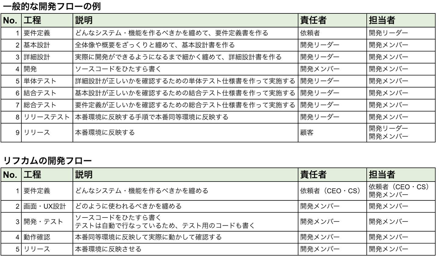 一般的な開発フローとリフカムの開発フローを比べながら説明していきたいと思います。