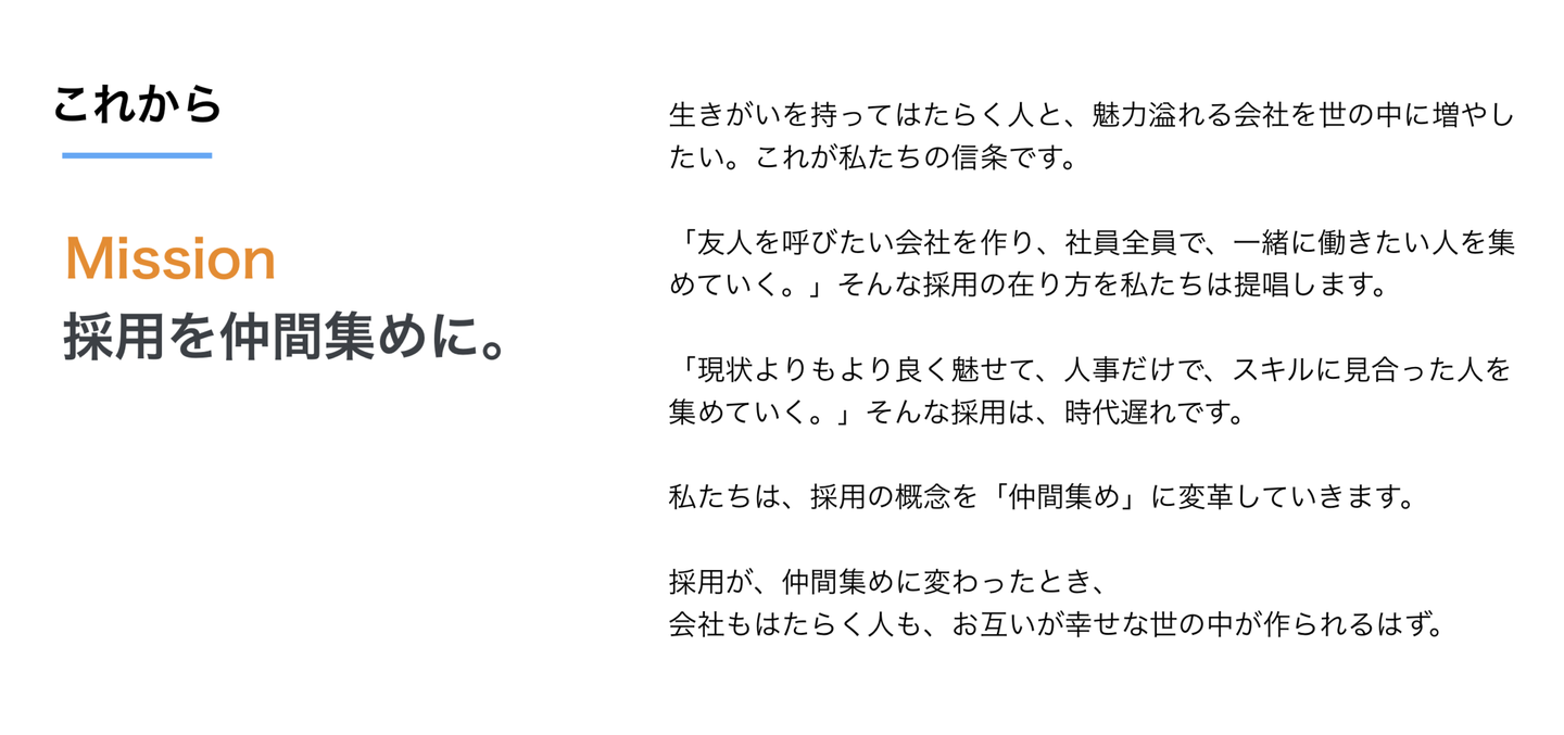 私たちは、採用を「仲間集め」という新しい概念に変革していくことでより良い社会を作っていきたいと考えています。このミッションをどのようにして考えたのか紹介します。