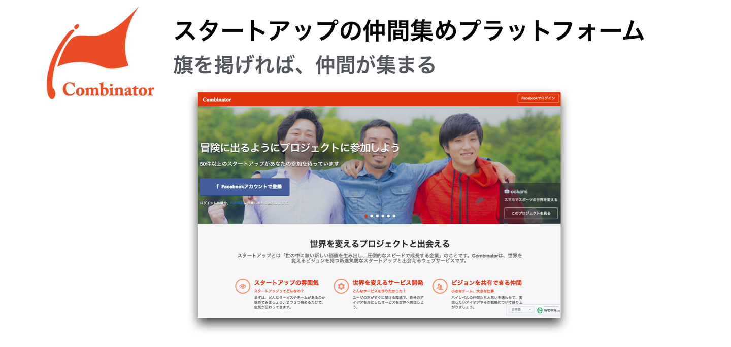 そこから生まれたのが、スタートアップの仲間集めプラットフォーム「Combinator」でした。