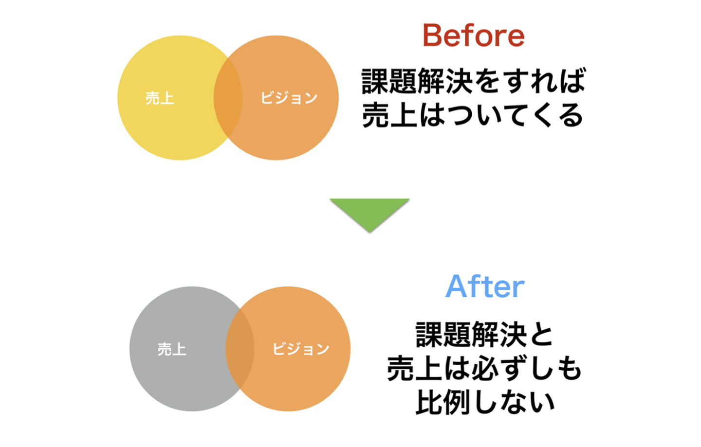 当時、私は課題解決をすれば売上は後からついてくると考えていましたが、必ずしもそうではないということを学びました。