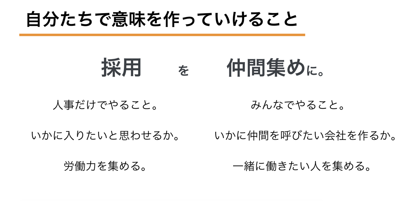 採用というものを、仲間集めに思いっきり変えるのか。