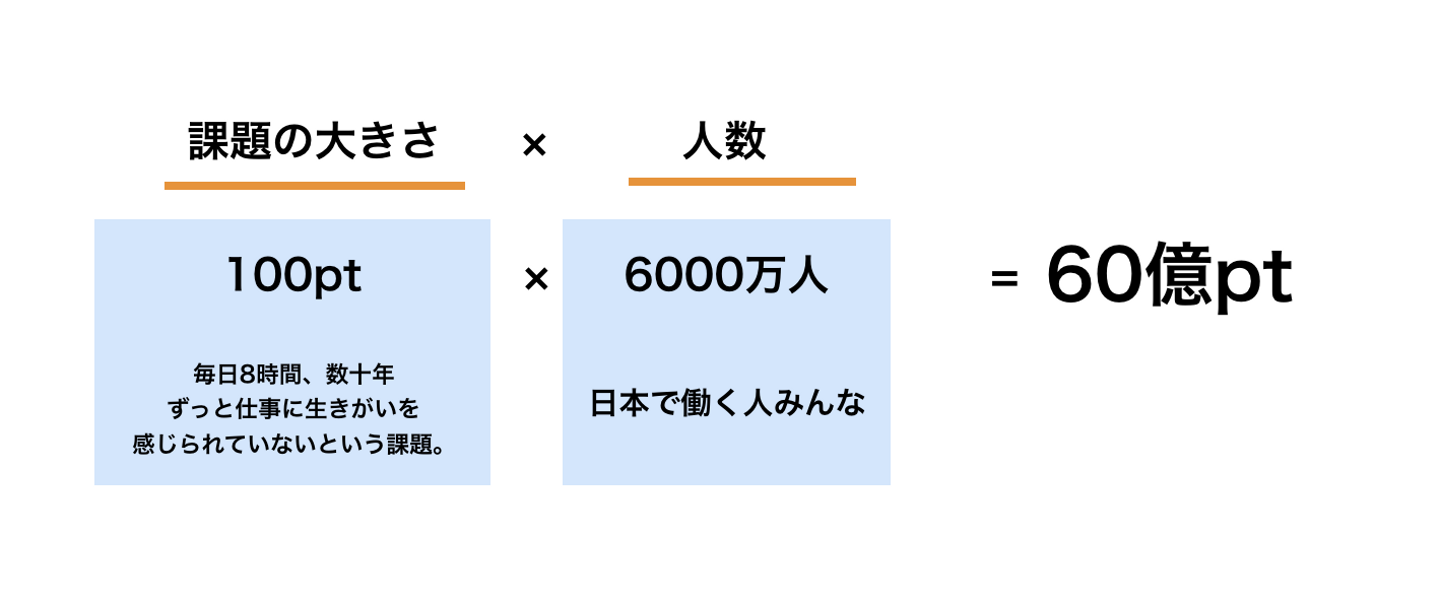僕たちは、採用市場を仲間集めにリプレイス変えていきますが、実際に届けたい価値としては、仕事に生きがいを感じられていない人たちの課題に立ち向かいます。