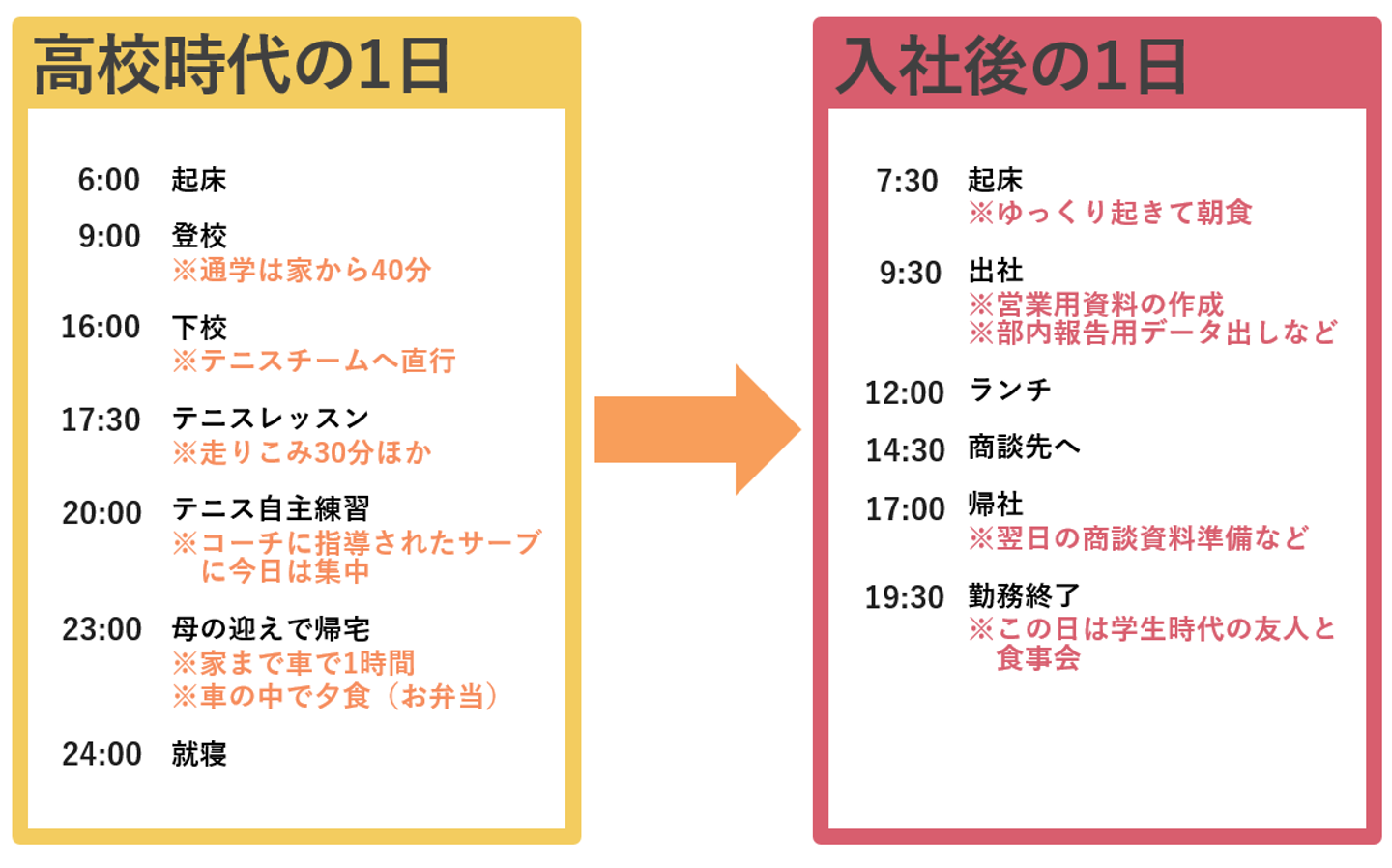 ≪就職ビフォーアフター:吉澤ちゃんのタイムテーブル≫