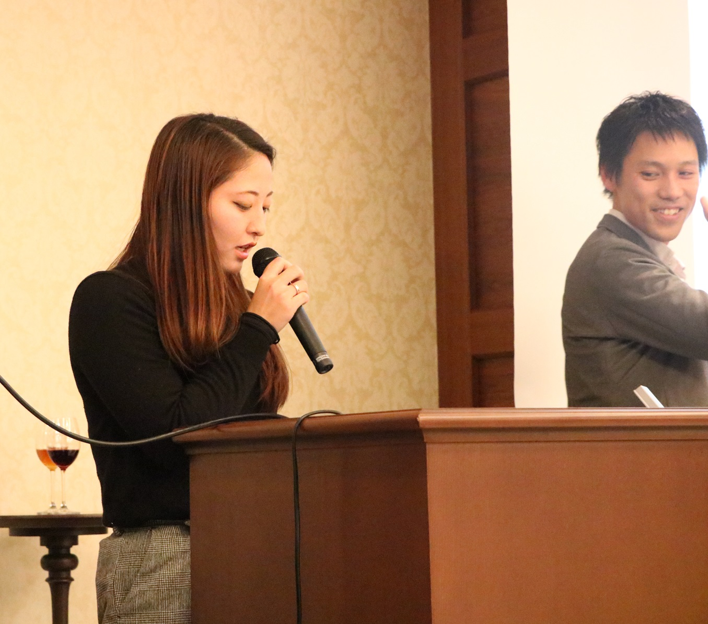 ※1月の全社キックオフで、司会をしたのときの写真です。右は代表:鈴木です!