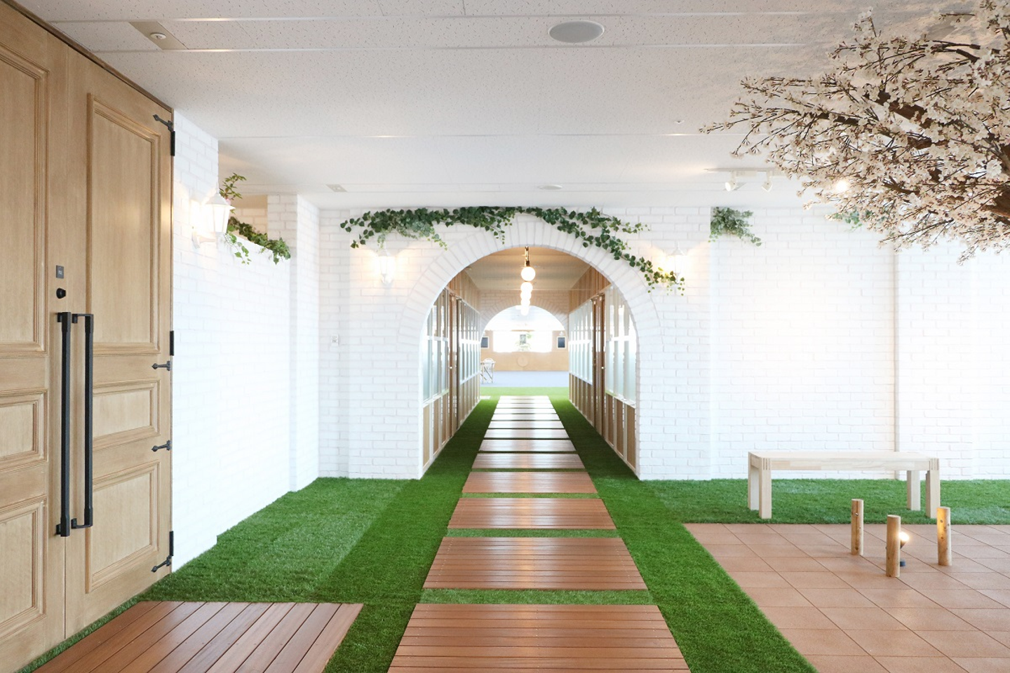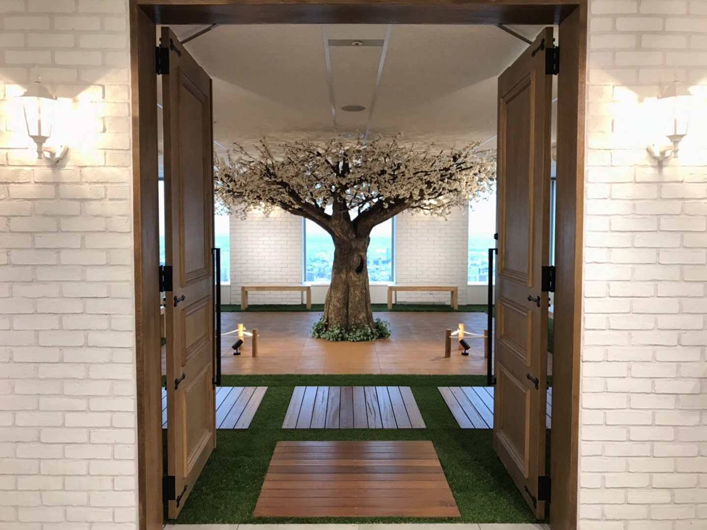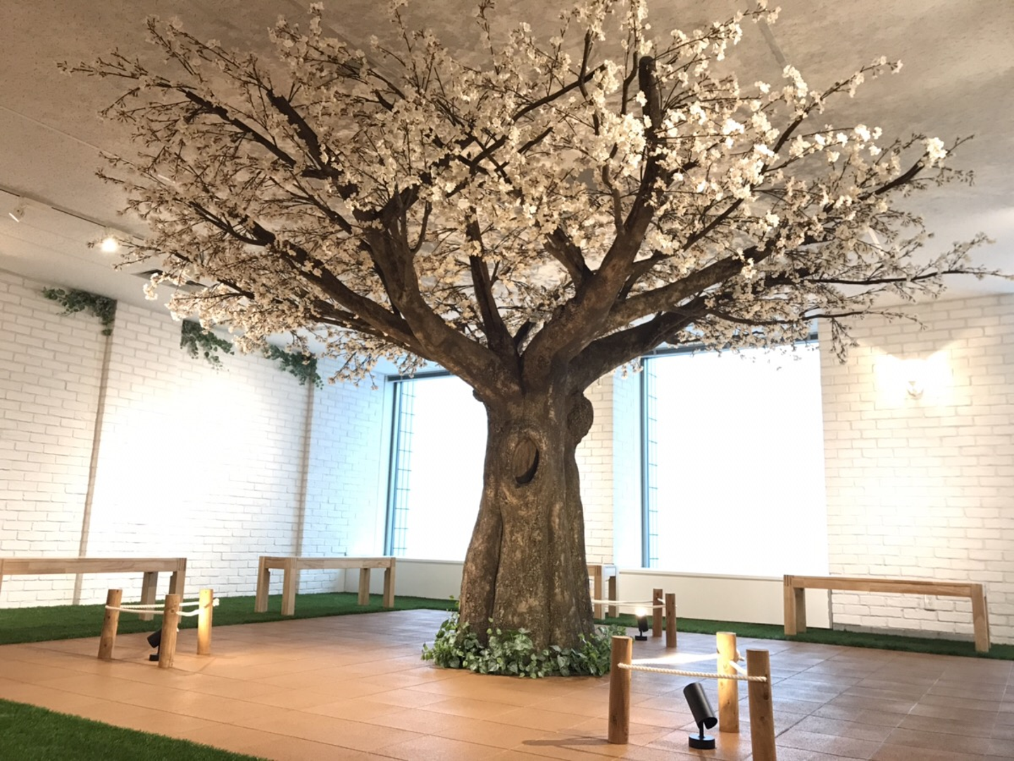 ご来訪いただいたお客様には必ずここを通っていただく仕掛けになっているので、とにかく桜のリアリティにこだわりました。※近くで見ていただいたお客様にも、「本物?! 」というお声をいただけるくらいリアルな仕上がりになっています。