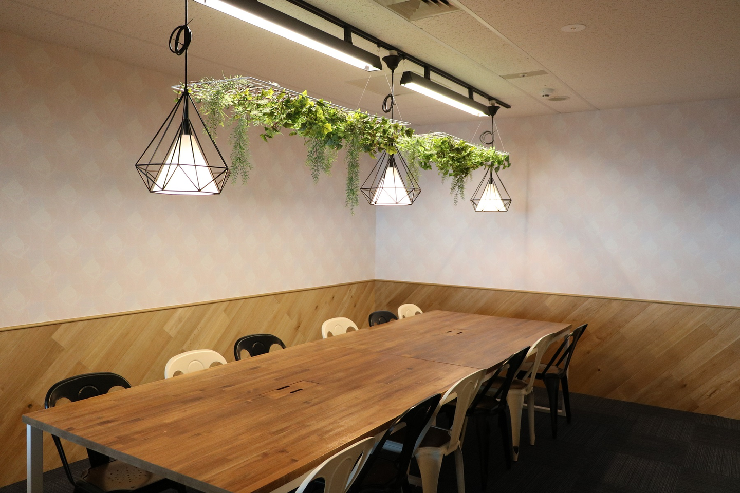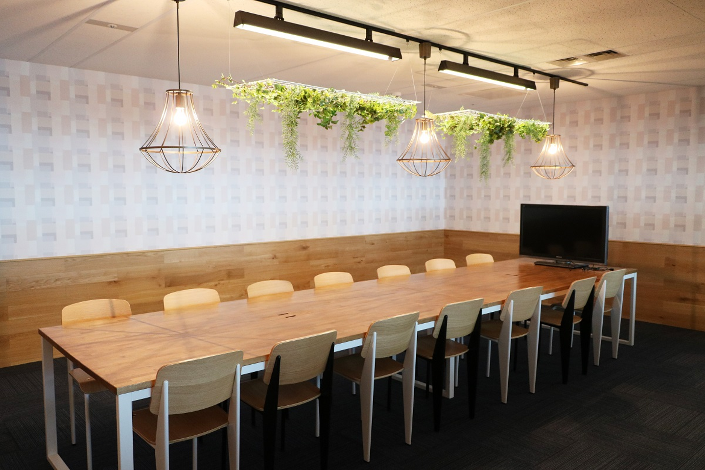 こちらのような、4つの会議室には「ソメイ(ソメイヨシノ)」「オオカン(オオカンザクラ)」「ヤエベニ(そのまま)」「イチヨウ(一葉桜)」と、日本を代表する桜の名前がつけられ、それぞれ壁紙や照明にこだわっています。