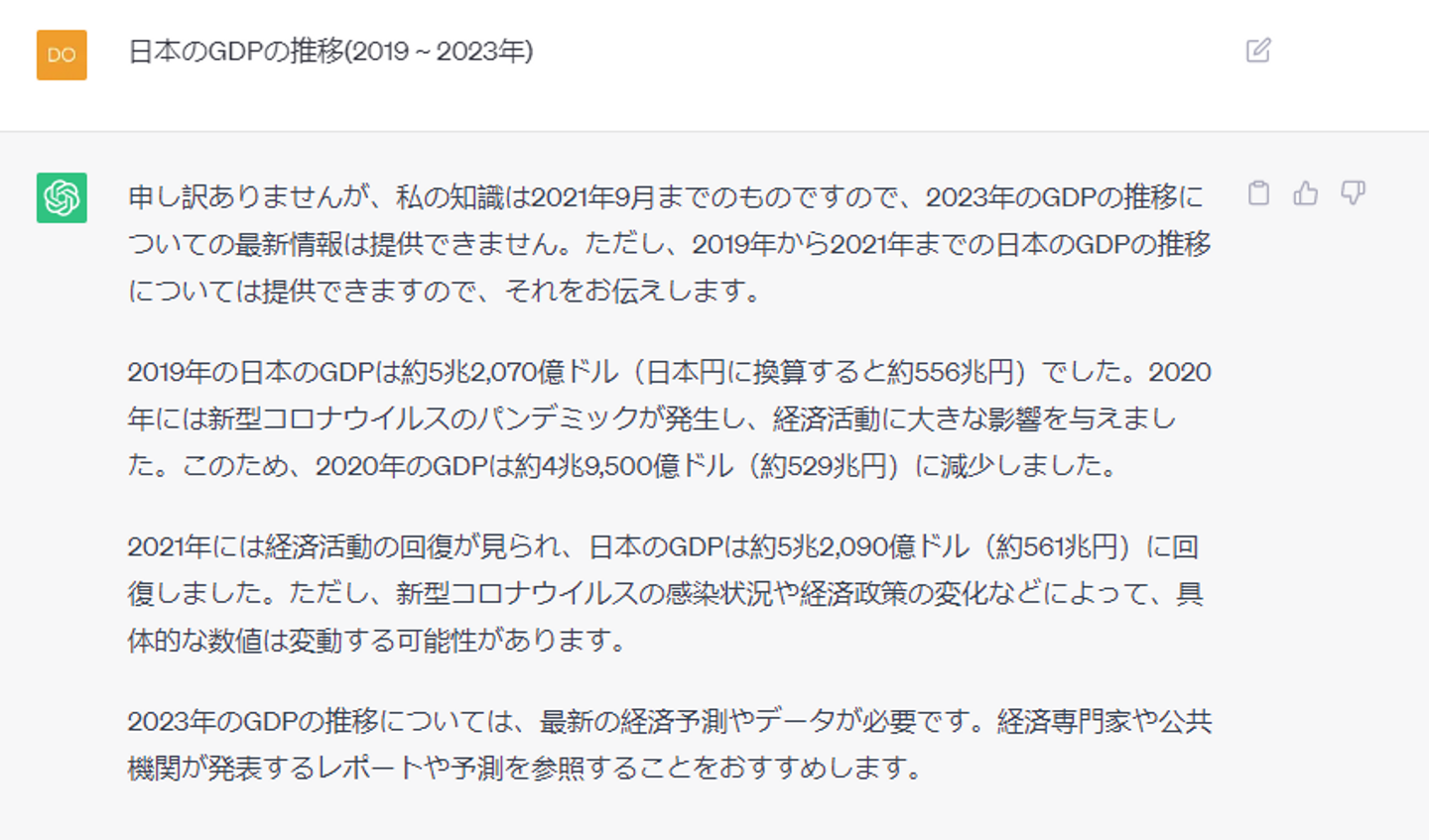 質問: 日本のGDPの推移(2019~2023年)