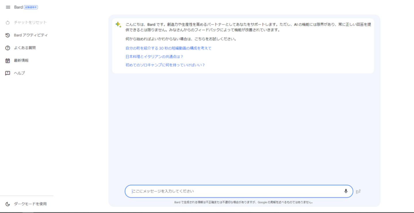 Bardはまだ “試験運用中 “という位置づけですが、誰でも使えるようになったのです。