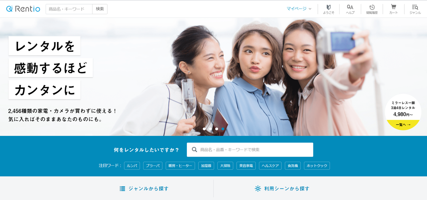 弊社は家電やカメラをネットでカンタンにレンタル・購入できるサービス「Rentio」を運営しています。 https://www.rentio.jp/