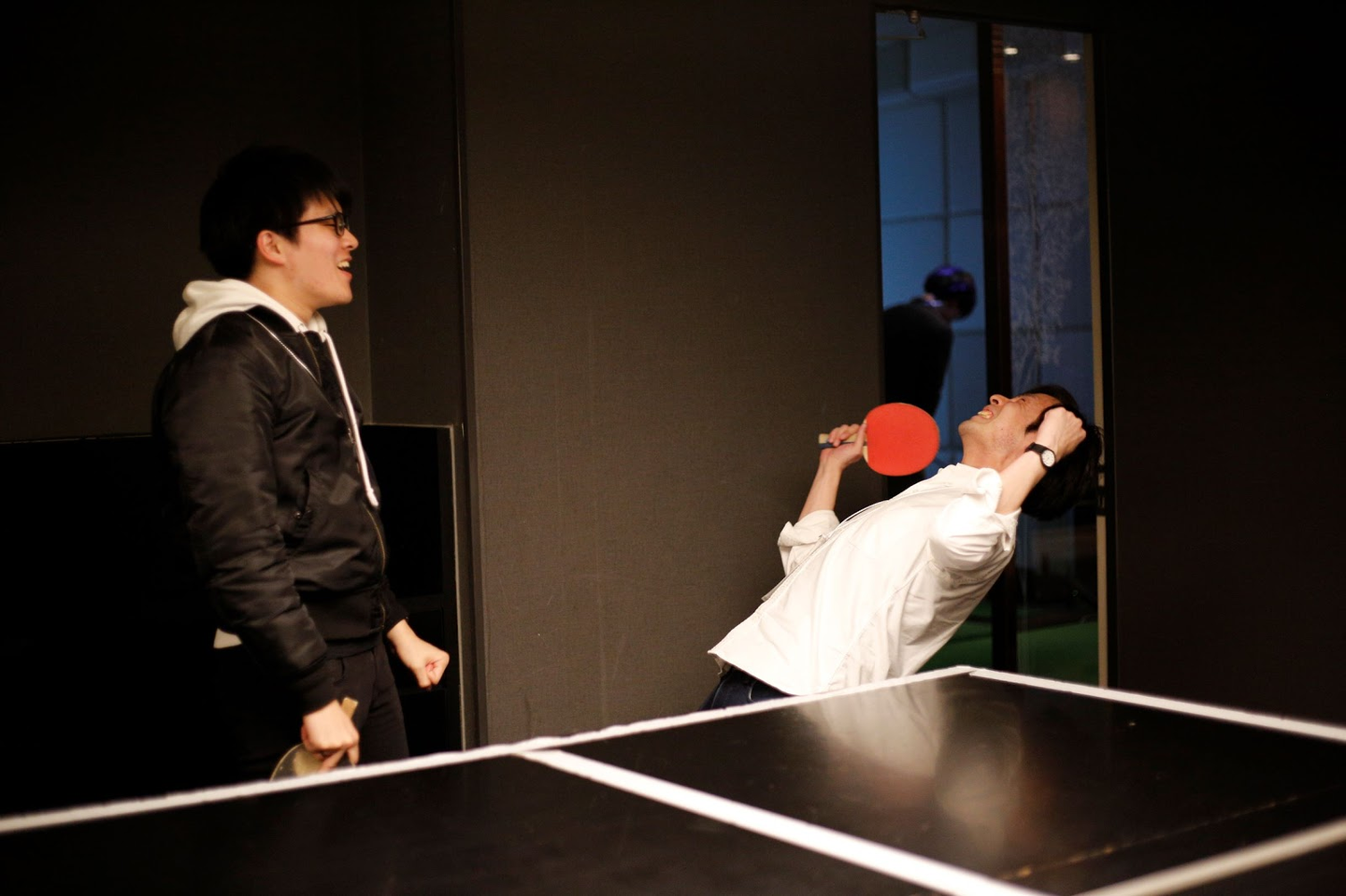 相当な熱戦だったのでしょうね(笑)卓球で大盛り上がりする人たち。