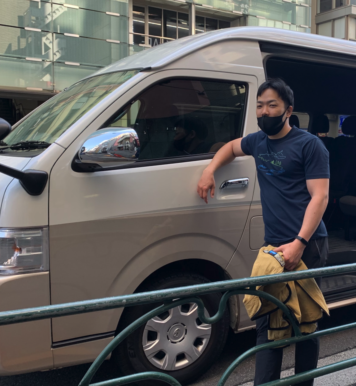清水:山梨に「ふもとっぱらキャンプ場」という富士山が一望できて、予約が全然取れない大人気スポットがあるのですが、そこに行くことができました。だいたいいつも代々木のオフィス前に8:00ぐらいに集合して、車で向かいます。その時は大きいハイエースのキャラバンを借りてみんなで行きました。